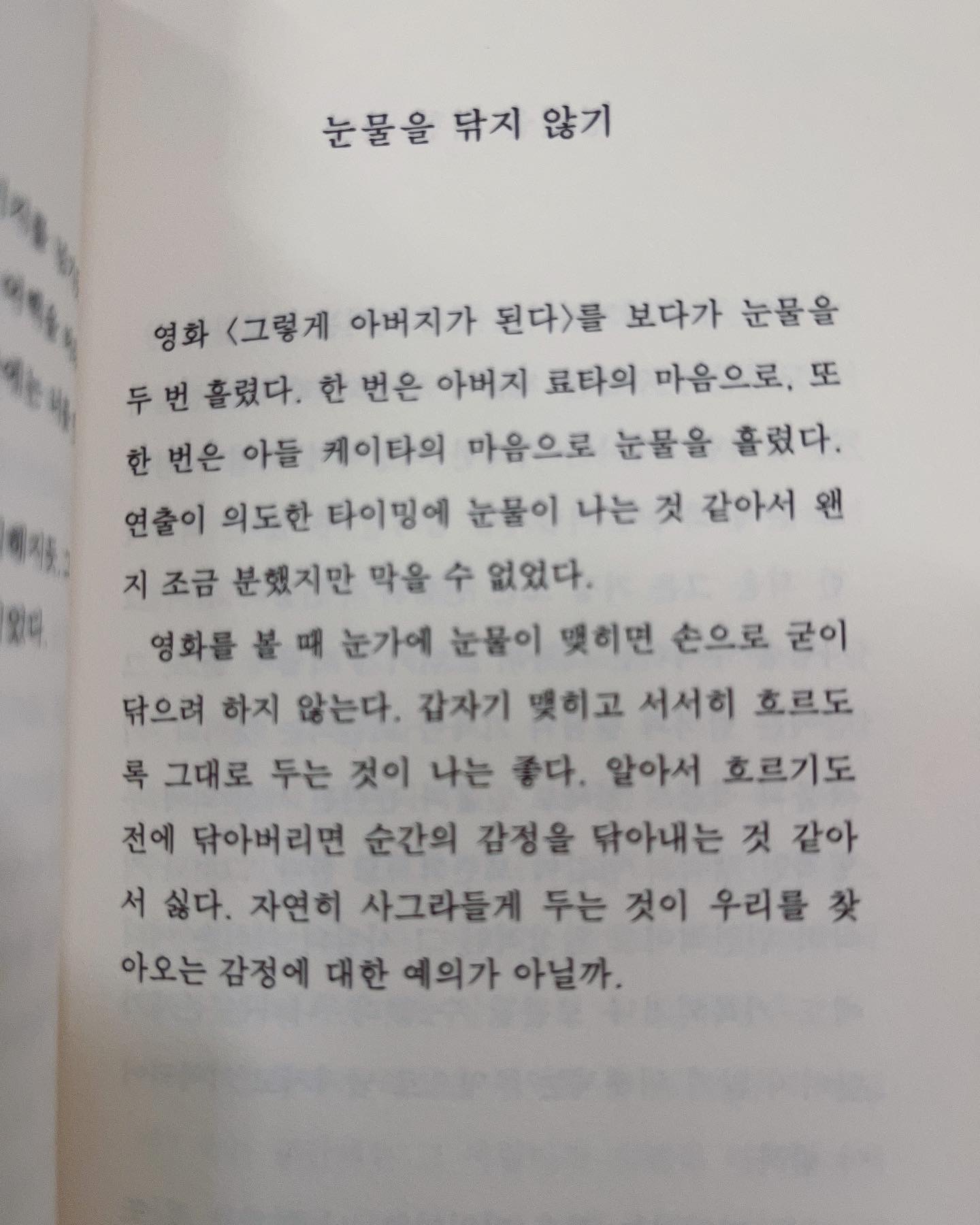 불안은 언제나 눈에 잘 띄는 구석 한편에 웅크리고 앉아있다. 나는 끊임없이 그와의 대화를 시도했었다. 그는 내게 눈길 한번 주지 않고 오로지 침묵으로 일관했다. 그럴 때면 내가 잠시 눈길을 돌려 책을 읽거나 사진을 찍었다. 그 과정에서 나 자신과 대화하는 방법을 배우게 되었고, 이제는 그의 침묵과 그의 자리를 인정할 수 있게 되었다. (80pg 불안)