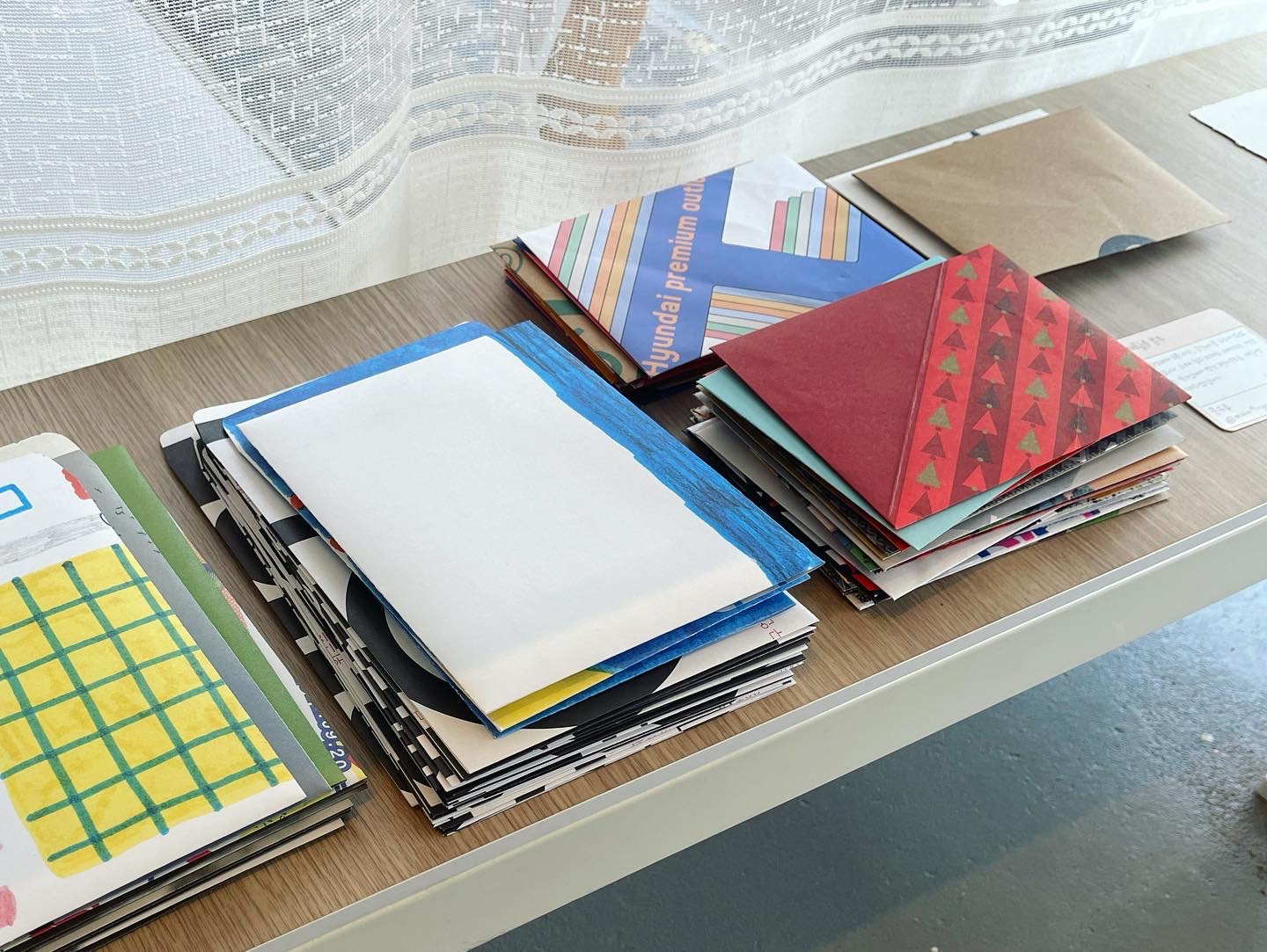 일상서재 오픈 시기, 공간에 큰 누수가 있었답니다. 그 당시 침수로 폐기 예정이었던 책들을 작가남께서 멋진 편지봉투로 재탄생시켜주셨답니다.