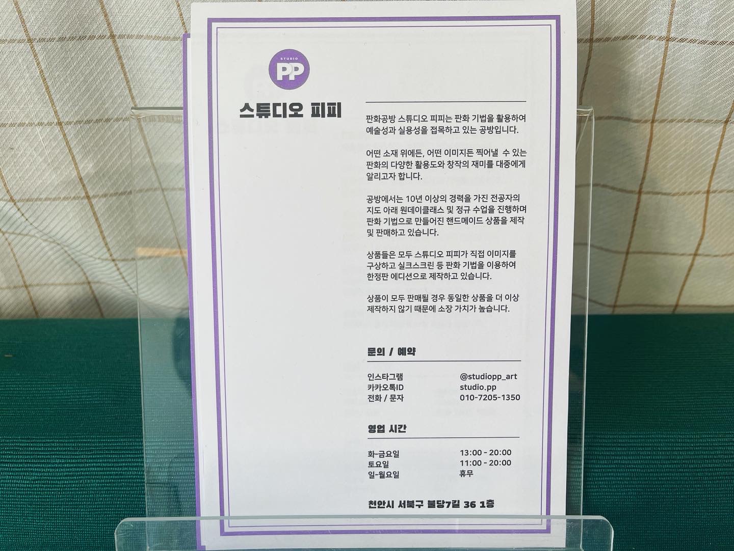 스튜디오피피는 불당동, 월봉고등학교 근처에 공방을 자리잡고 있습니다.