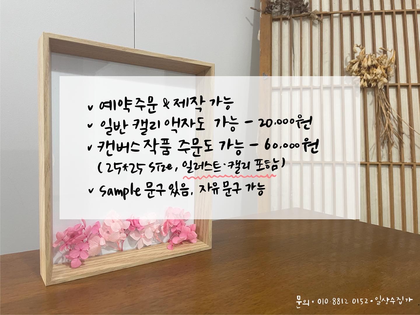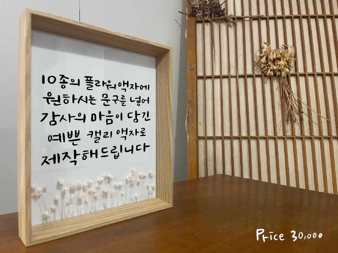 원하시는 글귀를 예쁜 캘리로 꽃밭의 하늘에 담아 즉석 제작해드립니다