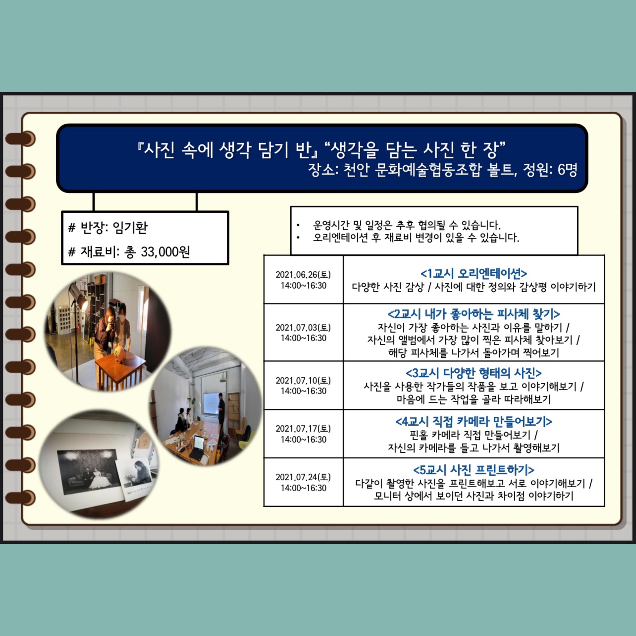 수강생은 무료로 수업에 참여 가능하며 (수업별 재료비 별도)