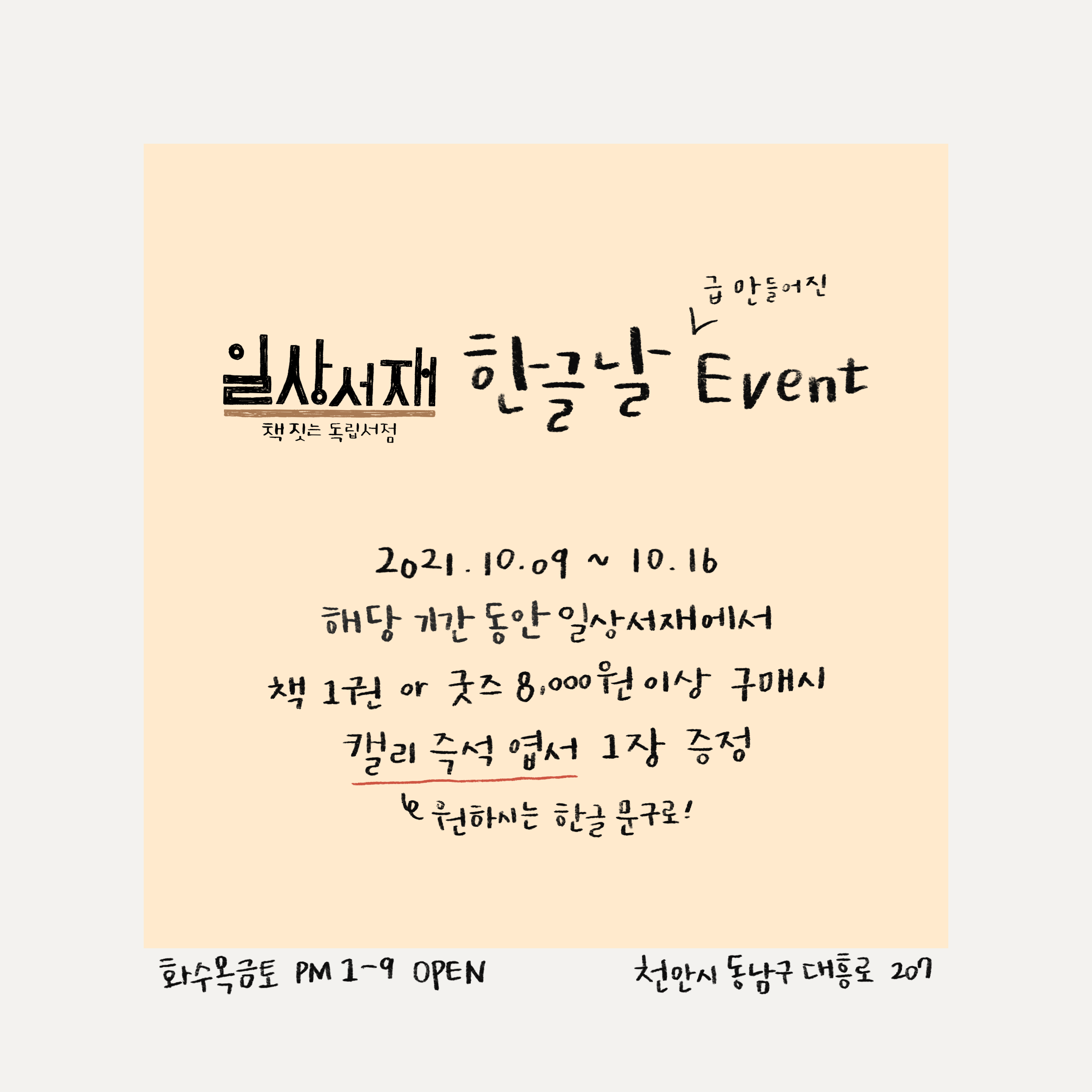 일상서재에서 책 1권 or 굿즈 8천원이상 구매시